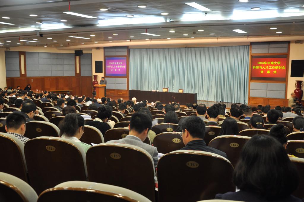 本网讯:4月22日上午,2016年中南大学科研与人才工作研讨会开幕式在校本部科教楼国际报告厅举行。围绕“坚持创新驱动与人才强校,以高水平成果支撑“双一流”建设”这一主题开展的为期两个月的科研与人才工作研讨活动也由此正式拉开了帷幕。在校校领导、两院院士代表、二级单位负责人和科研工作者代表近400人参加了会议。会议由常务副校长胡岳华主持。