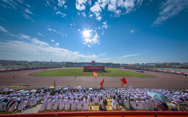 毕业生们穿着各院纪念衫,坐在观众席上形成多彩的海洋,欢呼雀跃,掌声经久不绝。