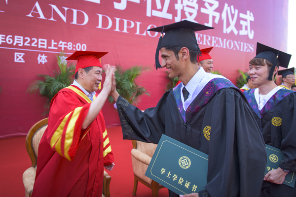 校长张尧学带着伤感与惆怅与毕业生们依依惜别。他说:“你们是我担任校长后第一次迎进中南的学生,在我的心里,你们有特别的位置!我们在一起的一千多个日日夜夜里,不断地演绎着相逢、邂逅、变化和成长的故事。”“参与改革、学习知识、提高能力、塑造价值、创新创业,深潭如波、弦歌不辍。”中南和大家一起成长、成熟。升华广场、鸟巢、玉带河……都将是大家永远的青春记忆。