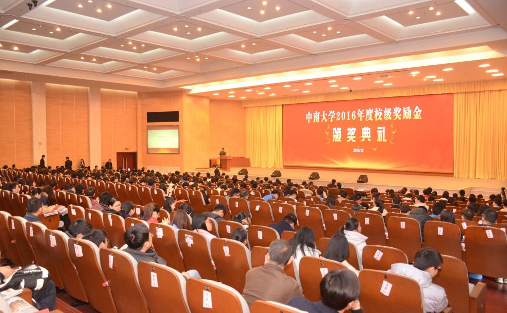 陈翔副校长宣读了《关于公布中南大学2016年度校级奖励金评选结果的通知》。2016年度校级奖励金设奖共39项,来自各学院的90名教师和1805名学生获奖,总金额近1000万元。