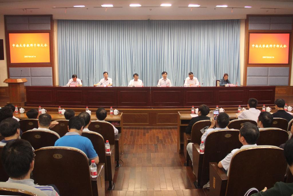 本网讯 6月1日,中共中央组织部、教育部在科教楼报告厅召开教师干部大会,宣布了中共中央、国务院的任免决定:田红旗任中南大学校长;张尧学不再担任中南大学校长职务。