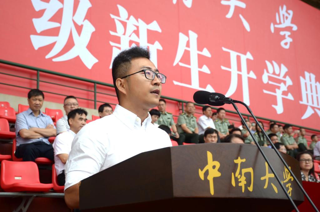 化学与化工学院教授纪效波代表全体教师对新生的到来表示欢迎与祝贺,他认为态度决定一切,希望新生能尽快完成角色转变,积极地面对学习和生活中出现的问题和困难,利用好学校提供的多样平台,敢于尝试,勇于锻炼自己发现和解决问题的能力,做一名勇敢自信的中南人。