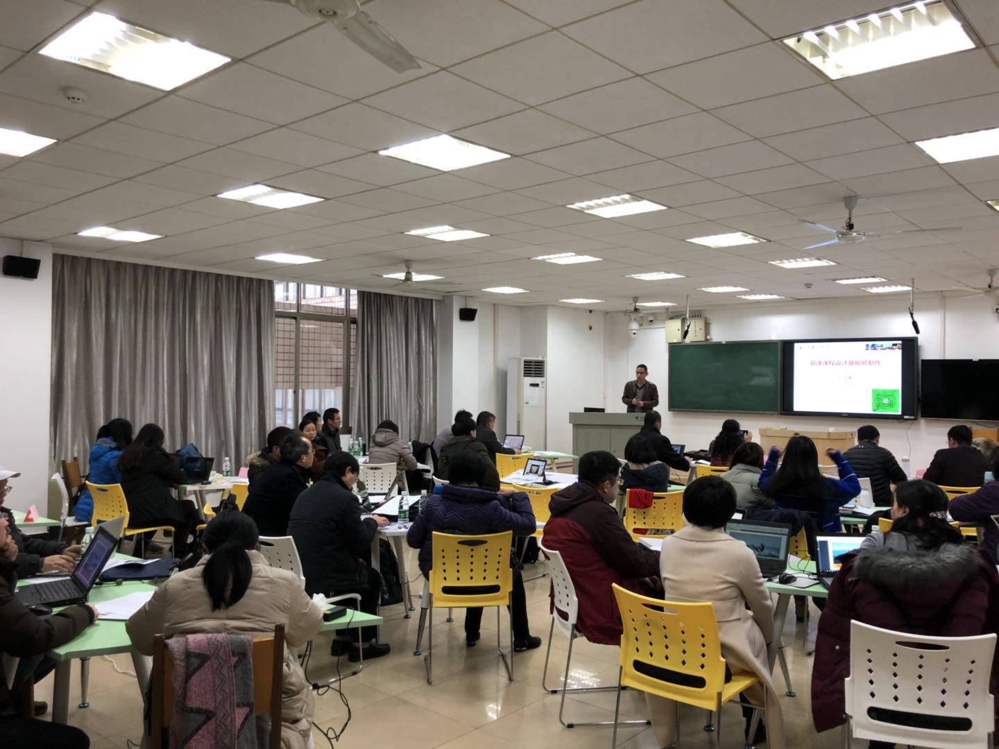 本网讯 1月7日,周末,寒气逼人,而校本部科教北楼404教室,暖意融融,50名来自各二级学院的中青年教师做回一次学生,他们聆听上海交通大学“好大学在线”平台运营主管、高校精品慕课评审专家苏永康的慕课教学和经验介绍,与同事一起开展基于慕课的知识点融合设计和混合式教学设计。