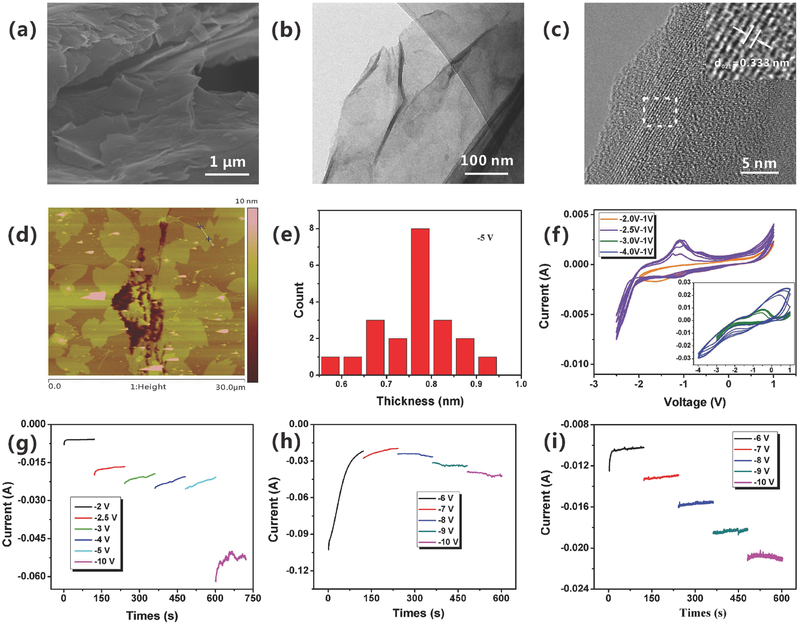 磷烯(少层黑磷),作为后石墨烯时代研究的焦点,具有褶皱的二维层状结构,直接能带间隙,层内各向异性及超高的钠电理论比容量,近年来在光电、催化、新能源材料等领域大放异彩。目前磷烯的主要制备方法为液相剥离和机械剥离,但其耗时长、效率低并会引入结构缺陷等缺点严重阻碍了磷烯在各个研究领域的发展。纪效波教授团队首次将电化学阴极剥离的方法引入到磷烯的制备中,得到了层数可控、面积大、缺陷少的磷烯,并将通过电化学方法制备的磷烯应用到钠离子电池负极材料中,表现出了优异的电化学性能。在100 mAg-1的电流密度下循环50圈仍有1500 mAh g-1的比容量,1500 mA g-1的大电流密度下循环100圈保持了600 mAh g-1的比容量。这种新型、高效制备的方法不仅可以促进磷烯基材料的研究应用和电化学剥离技术的发展,还为单层二维材料的制备提供了新的可能性。