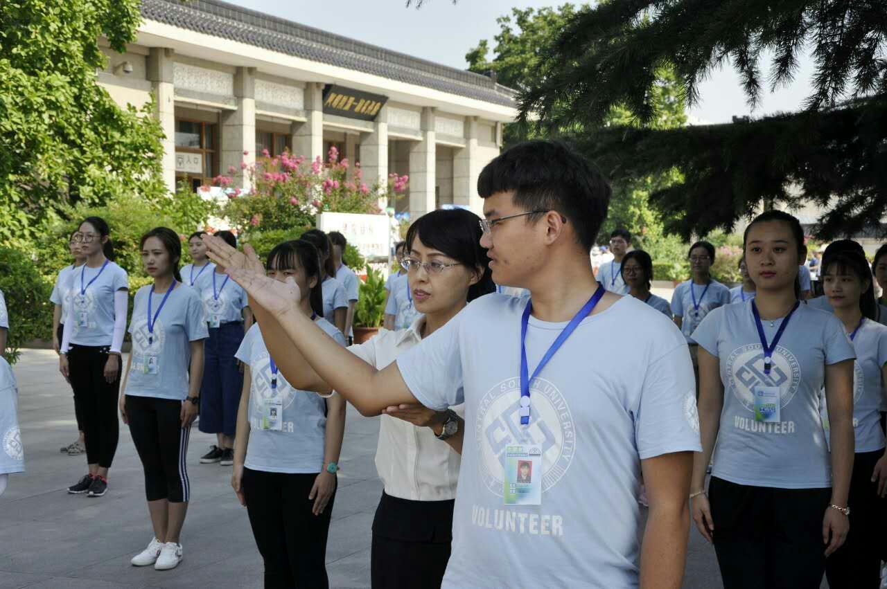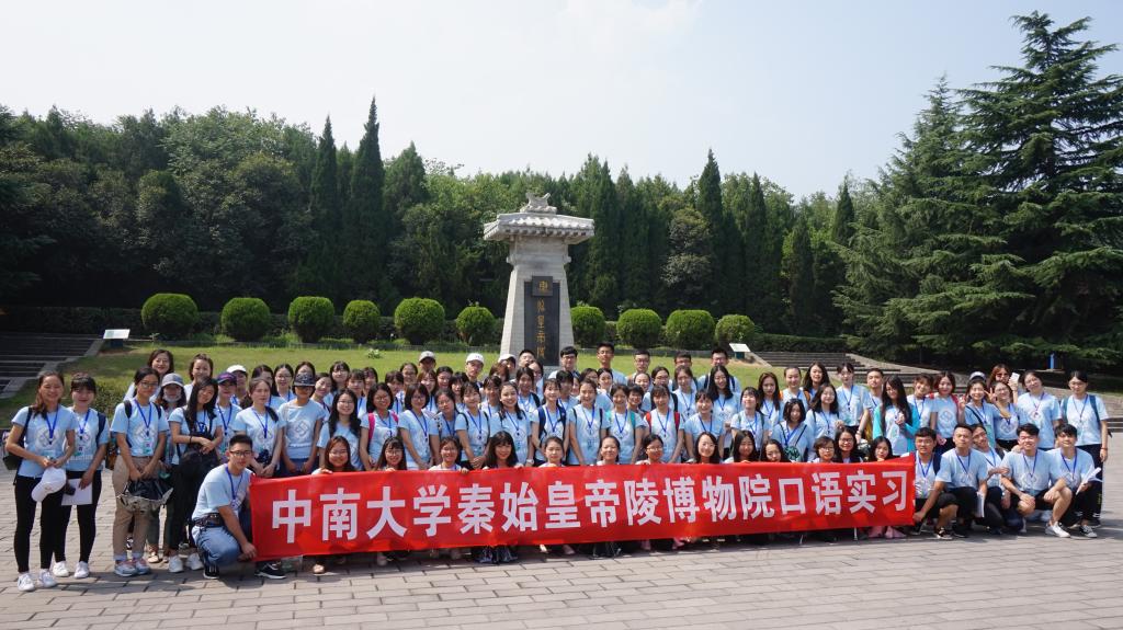 本网讯 7月31日至8月11日,中南大学外国语学院2015级英语专业、西班牙语专业共95名学生作为第一批暑期口语实习队在秦始皇帝陵博物院的口语开展实习工作。第二批实习队伍也于8月14日前往实习地。本次实习由秦始皇帝陵博物院社会教育部组织安排,票务管理部、安全保卫部等部门配合协助开展,设有咨询讲解岗、调查问卷岗和调查问卷岗三个志愿服务岗位。社教部特别安排资深讲解员张银玲、马灵芝二位老师负责此次工作。同时,外国语学院15级班导师李白清、罗运芝、王晓东、邓欣蓓等同赴西安参与实习指导工作。