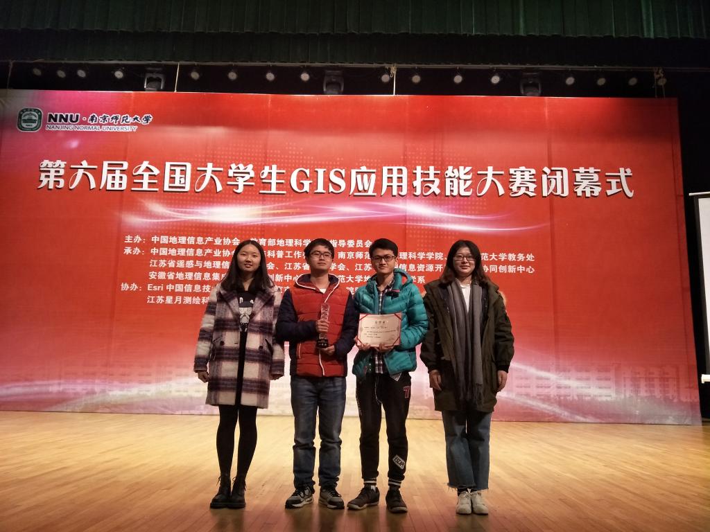 本网讯 12月8-10日,由中国地理信息产业协会、教育部高等学校地理科学类专业教学指导委员会主办的“第六届全国大学生GIS应用技能大赛”在南京师范大学举行,北京大学、浙江大学、武汉大学等97所高校的100支代表队参赛。我校地理信息科学专业熊强强、谌恺祺、刘颖、陈曦四位同学组成的参赛队在比赛中荣获一等奖,赵玲老师荣获“优秀指导教师奖”,中南大学荣获“优秀组织单位”称号。