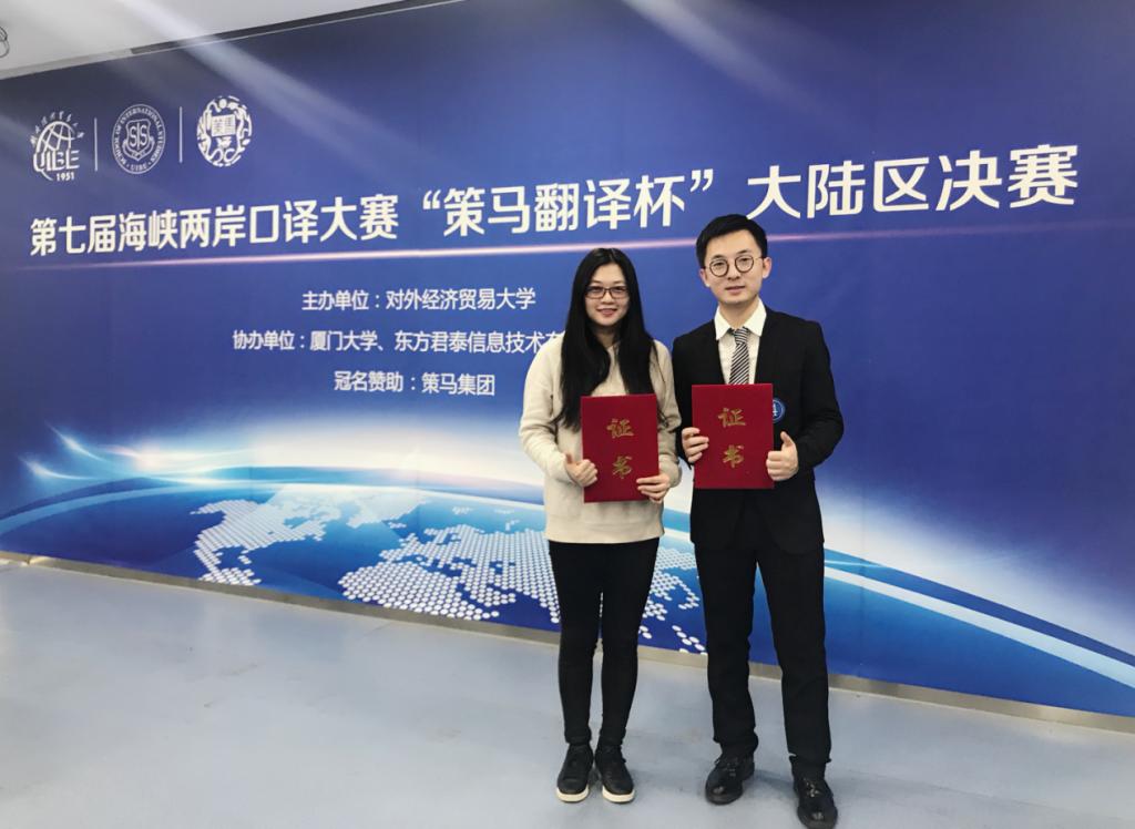 本网讯 12月10日,第七届海峡两岸口译大赛大陆总决赛在北京举行。中南大学MTI口译专业学生杨沛然获得全国第四名,张春敏老师获“优秀指导老师”奖。这是湖南省内高校的选手首次晋级大陆、香港、澳门、台湾四地赛总决赛,也是我校参赛以来所获得的最好成绩。