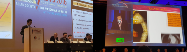 本网讯 日前,湘雅二医院血管外科主任、“湘雅名医”舒畅教授应前国际血管外科学会(ISVS)主席Frank Veith教授邀请,作为特邀专家,连续第六年作为国际Faculty Member出席在美国纽约举办的全球最大规模血管外科学术会议----第43届Veith Symposium(威斯国际论坛)大会,并于大会首日在主会场作题为“Tips and tricks to make chimney (Ch\TEVAR) in the Aortic arch successful”的专题报告,与国际顶级血管外科专家Safi和Cosselli等一同在此大会主会场黄金时段场次做主持及点评,同时担任此次大会中国专场主席,将中国血管外科近几年的发展状况及最新成就介绍给全球的专家。