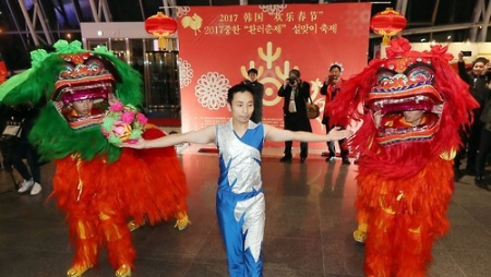 2017韩国“欢乐春节”由韩国仁川市政府、中国文化部、中国驻韩国使馆、湖南省人民政府共同主办,活动举办时间将持续至2月28日,共有“多彩湖南”舞狮表演、“多彩湖南”舞狮培训、“多彩湖南”新春音乐会、“多彩湖南”湖南非遗艺术展、“多彩湖南”中国文化及湖南宣传片展映、“多彩湖南”仁川中华街春节庆典巡游、甲骨文百凤百吉书画展、《丝路新颜2016》图片展、中韩文化名人招待会、文化产品贸易洽谈会、贺岁电影展映等11个主题、40余场活动。