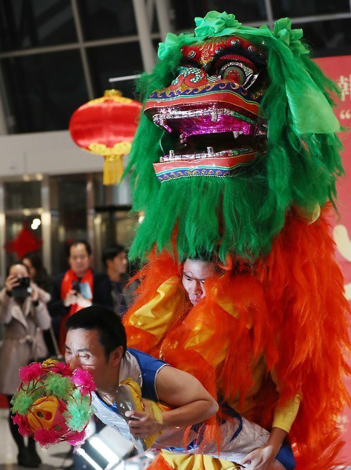 本网讯 1月11日,韩中大型文化交流活动——2017年韩国“欢乐春节”在韩国仁川松岛G-tower拉开帷幕,中国驻韩大使邱国洪、仁川市长刘正福等中韩两国嘉宾出席活动。当天上午,“欢乐春节”多彩湖南——舞狮培训首先在G-tower3层启动,共开展三场舞狮培训活动,吸引多国民众和常驻机构工作人员驻足观看。本次舞狮表演和舞狮培训都来自中南大学龙狮队。