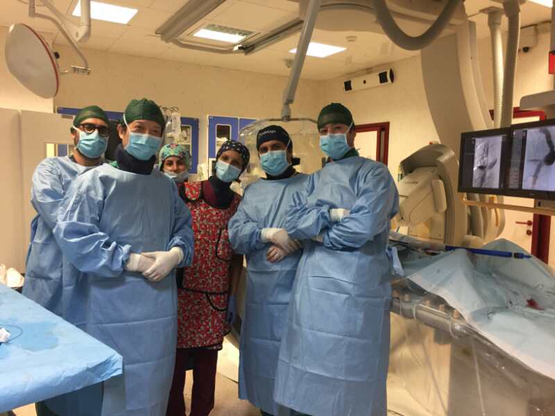在意大利罗马大学医学院,舒畅教授顺利完成一台复杂降主动脉瘤腔内修复术并同时会诊了一例主动脉弓部复杂病变的患者,制定了杂交手术方案。罗马大学四家附属医院的血管外科主任均现场观摩舒教授手术演示,就后期互送医师培训及全面合作达成一致意见,并拟报意大利国家卫生部。