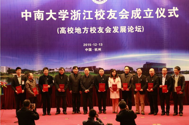 本网讯:12月13日下午,中南大学浙江校友会成立大会在杭州之江饭店报告厅召开。中国工程院院士、我校原副校长邱冠周,校友总会副秘书长黎明,香港、江苏、上海、桂林、江浙沪校友商会、深圳青年商会等各地校友会代表,浙江大学、南京大学、清华大学等20所兄弟高校校友会30多位会长、副会长、秘书长以及浙江地区校友代表300余人参加了成立大会。会议由著名财经主持人、我校技术经济专业89级校友李博主持。