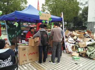 有了第一次活动试水成功的经历,2016年11月绿色科技协会低碳小组在“双11”之后开展了绿色集市活动。由同学们自行把快递纸箱送到指定位置,然后由工作人员根据纸盒的大小为同学们积分,同学们可以用积分换取相应的礼品。绿色集市获得了极大的成功,活动回收纸箱5000余件。绿色集市的成功开展不仅在校内掀起轰动,而且引起了校外媒体的关注,长沙晚报等多家媒体都给予了报道,这给了低碳小组极大的信心。