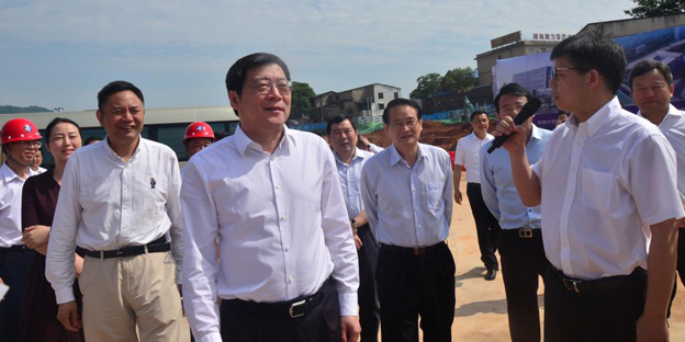 本网讯 5月25日上午,湖南省委书记杜家毫在我校科技园(研发)总部进行调研,湖南省委常委、长沙市委书记易炼红,长沙市委副书记、市长、湖南湘江新区党工委书记陈文浩,长沙市委常委、湖南湘江新区管委会主任曹立军,校领导高文兵、张尧学、陈春阳、周科朝以及岳麓区主要负责人等陪同调研。