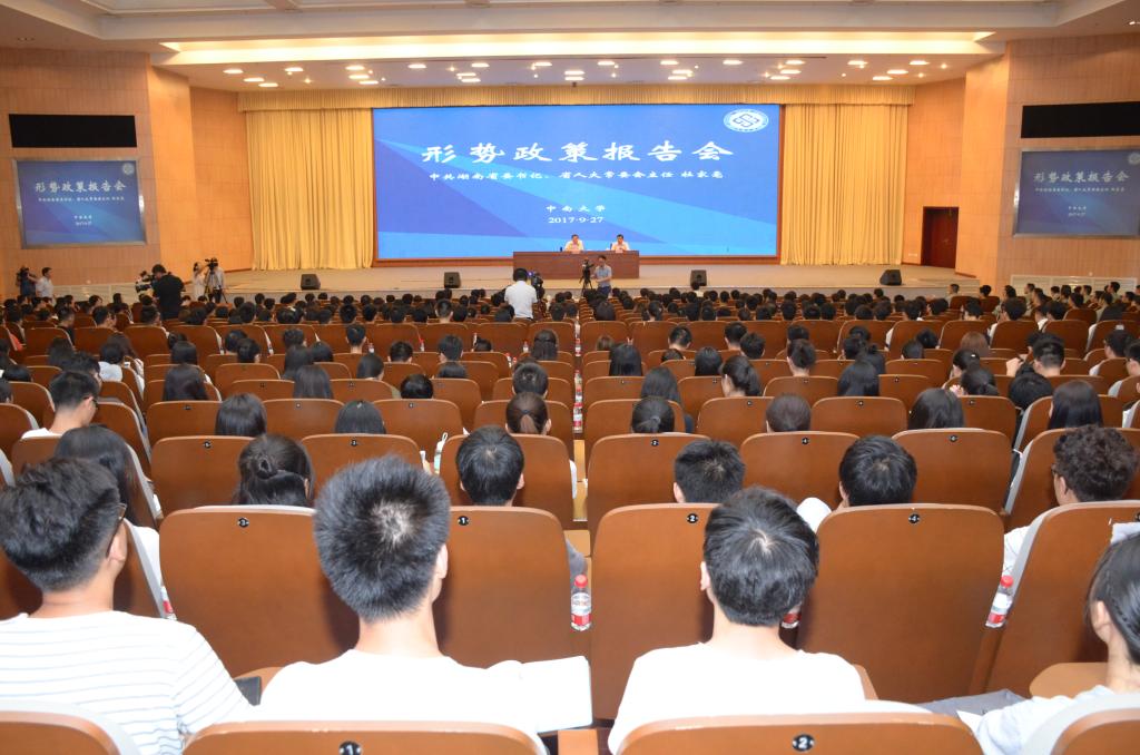 湖南省委常委、省委秘书长谢建辉,省教育厅党组书记、厅长肖国安,校领导高文兵、田红旗、陈治亚、陈春阳、陈翔等与1000余名师生代表在主会场聆听了报告会。同时,在新校区教学楼D座教室,各二级单位会议室,其他中南师生通过校电视台直播聆听了报告。报告会由校党委书记高文兵主持。