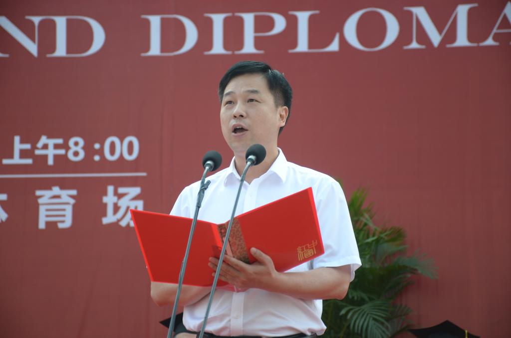 教师代表易险峰表达了对毕业生的祝福和不舍,他勉励学生们做一个有情怀的人,做一个有情义的人,做一个有情趣的人,心有信念、胸怀格局、有容乐群、笃行敬业、丰盈内心、悦纳自己。在付出和奉献中构筑人生高度,成为有责任、有抱负的民族脊梁。