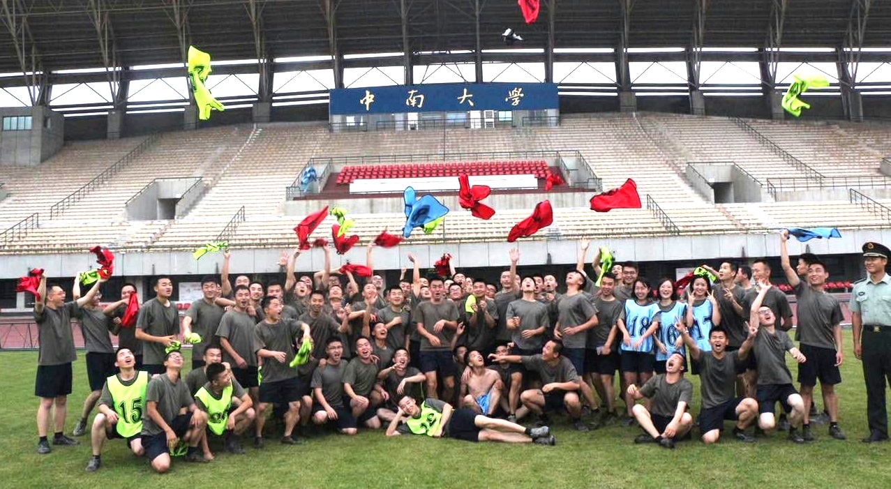 崔翔和闫伟韬是2013级的国防生,今天在毕业典礼现场看国旗护卫队整齐地迈向升旗台,他们有些难以名状的滋味:“这是最后一次看中南的国旗护卫队了,以前都是我们送学长学姐,现在轮到我们离开了,很伤感。”曾经在鸟巢的跑道上,他们不知道跑了多少圈,洒下了多少汗水。崔翔给记者分享了一张照片,是5月18日2013级国防生体能考核结束后的合影留念,经过几个月的训练,考核取得了通过率高达93%的好成绩,是历届国防生的最好成绩。回忆起一起训练、互相加油打气的日子,崔翔十分感慨。