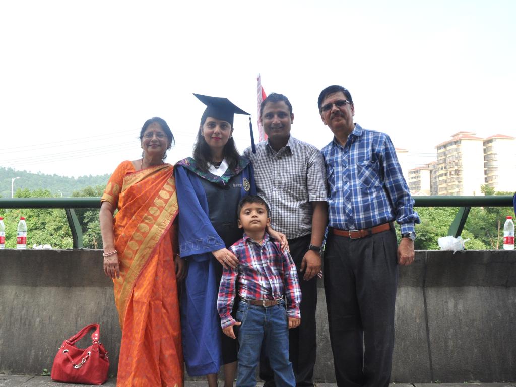 贾亚莎是尼泊尔政府选派到湘雅医学院的留学生,她学习的是妇产科,学成归去后,她将为政府设立的医院服务两年。三年异国求学的旅途,在今天画上圆满的句号,她的父亲、婆婆、丈夫及儿子特地从尼泊尔飞过来见证。“收到我国教育部外派留学通知时,我不知道自己将去哪所学校学习,来到中国,来到中南,来到湘雅,我发现比我想象中的好很多很多。谢谢!我会想念这里的。”贾亚莎动情地说道。她的儿子今年五岁,妈妈出国求学的日子,他经常向家人说想妈妈,现在团聚属于他们。