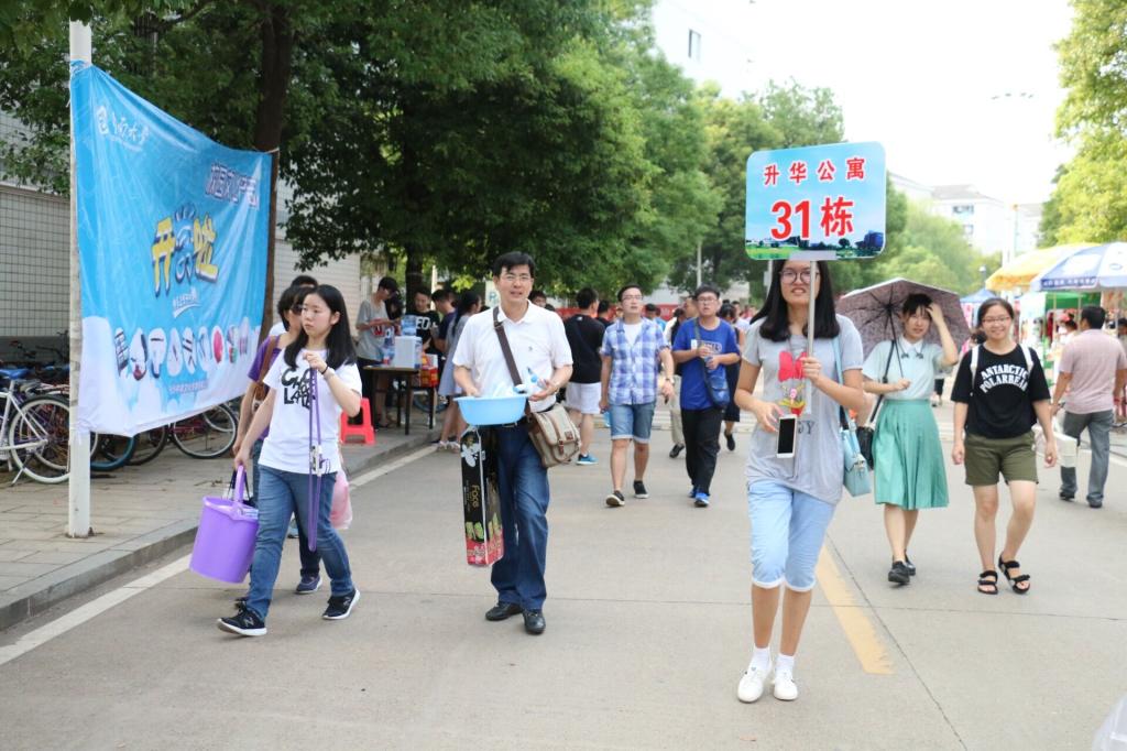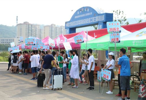 下午5点,在接车站点,一排工作人员举着手中的指示牌,等待着即将到校的新生和家长。来自粉末冶金研究院的刘思宇在去年来校报到时也得到了许多迎新的学长学姐们的帮助,今年,他便成为了其中一员。